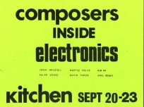 David Tudor was an American pianist and composer. He trained in classical piano and remains well known as the performer of pieces by composers such as John Cage, Morton Feldman, and LaMonte Young. He was an instructor and the pianist-in-residence at the Black Mountain College summer sessions from 1951-1953. In 1952, following time spent with Cage at Black Mountain, he famously performed the premiere of Cage’s 4’33, and went on to perform with the Merce Cunningham Dance Company from its inception in 1953 for over 40 years. Melding his work with composers, particularly Cage, who probed possibilities for the instantiation of experimental musical notations in a live piece with his longstanding interest in technology, Tudor’s own compositions often feature scores that call for electronic circuitry and are realizable in manifold ways. His paradigmatic composition Rainforest (later known as Rainforest IV), calls for multiple performers to run sound through resonant objects. In 1973 he formed the group Composers Inside Electronics, who perform the piece to this day, including most recently a version of Rainforest IV in 2007 at The Kitchen. Tudor performed Rainforest at The Kitchen in 1975, as well as a piece called Pulsers with Composers Inside Electronics in 1978, and Tables of Electronics as part of The Kitchen’s “Imaginary Landscapes: Festival of Electronic Music” in 1988. For more information, please visit: www.davidtudor.org