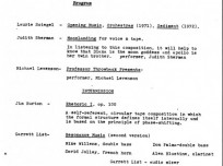 Music producer and composer Judith Sherman derives her love of music from childhood memories of singing with her family and community. She attended graduate school for music at the University of Buffalo where she was exposed to electronic music in her second year. Following her studies, Sherman gained a practical education in sound production through work at a jingle house and as an engineer at WBAI-FM, while simultaneously taking classes at the Institute of Audio Research. At the radio station she quickly rose through the ranks to become first Producer then Music Director before departing entirely to take on the role of Recording Engineer for the Marlboro Festival from 1976 through 1994. She has since established Judith Sherman Productions, and has won the Grammy Award for Classical Producer of the Year in 1993, 2007, and 2011. Sherman has produced music for such artists as Steve Reich, Philip Glass, and Terry Riley. In addition to her practice as a music producer, early in her career Sherman also experimented with sound composition in such pieces as Moonlanding which she performed at The Kitchen during an Evening of New Music in October 1972.