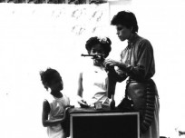 Judy Nylon is a multidisciplinary performance artist from Boston, Massachusetts, based for most of her career in London. Nylon toured with John Cale, formed the punk duo Snatch with Patti Palladin, and is credited by Brian Eno for inspiring his creation of ambient music. Her collaboration with Crucial on the album Pal Judy, produced by Adrian Sherwood, established her as a punk icon. In addition to her contributions to the London punk scene in the 1970s and ‘80s, Nylon also creates performance art and installation work that touch on political, social, and personal realities. She presented several such pieces at The Kitchen at the height of her career; for example, Nylon performed The Hand that Rocks the Cradle at The Kitchen in 1978 the same week that she played at CBGB with John Cale.