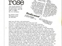 Peter Rose is an American artist working with film, performance, and recording. Rose primarily creates videos based on concepts including language, space, time, death, synapse, and synthesized nature as seen through the lens of phenomenology. Structuralist filmmakers and his background in mathematics are the primary influences on Rose's works. He was first performed at The Kitchen, in 1978, with his solo work “The Circular Heavens” (4). In 1985, for a self titled evening, Rose presented two videos “Digital Speech” and “Secondary Currents,” as well as “The Pleasure of the Text,” a live work that he performed in conjunction with his video. In 1998, he collaborated with Jeanne Jaffe for the exhibition “Virtual Objects and Embodied Images,” that featured sculptural works by Jaffe, with projected videos by Rose. For more information please visit: http://www.peterrosepicture.com/
